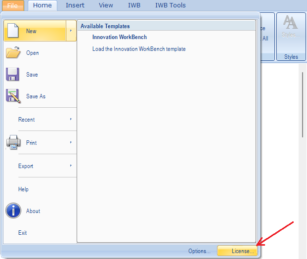 a) Open the license window by clicking on the “License” button.