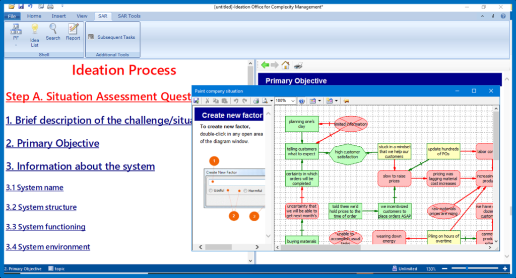 – Unique Ideation proprietary knowledge base extracted from numerous examples of creative solutions in business, management, logistics, and other social areas of human activities.